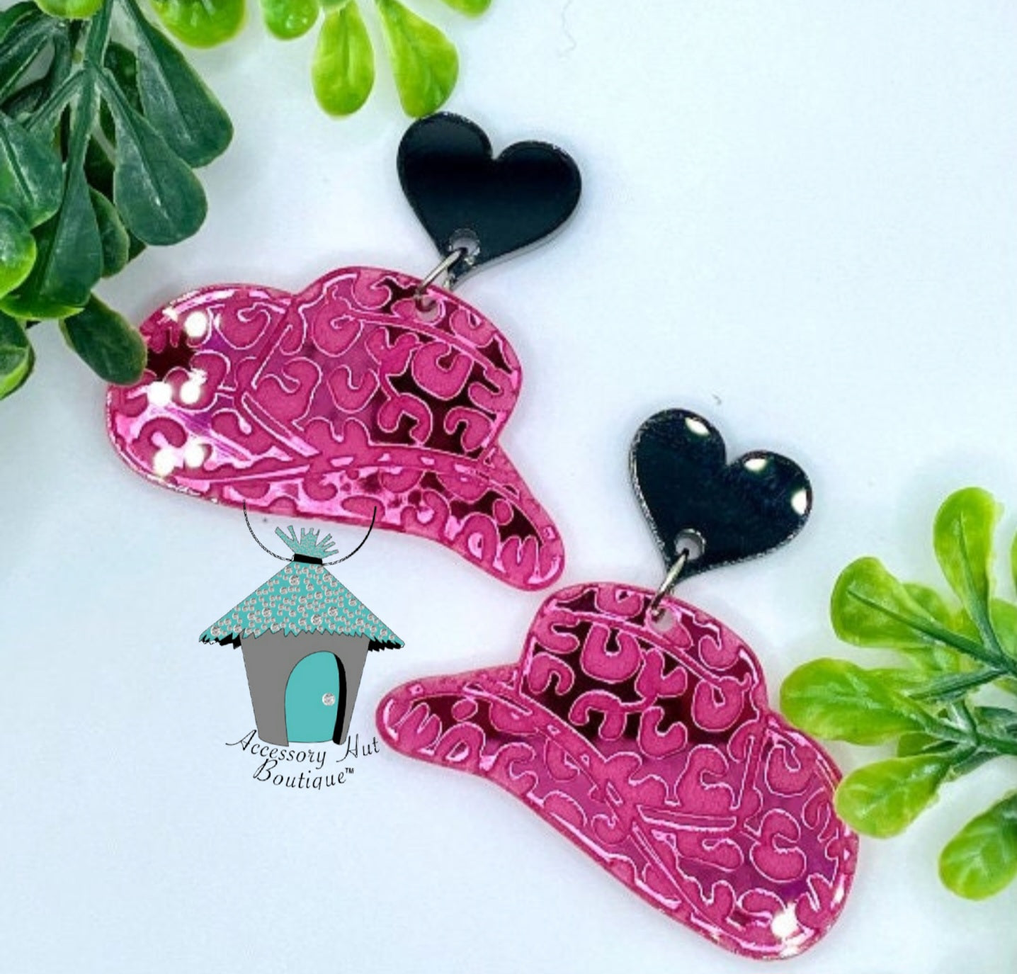"Wild at Heart" Mirror Acrylic Leopard Cowgirl Hat Statement Earrings